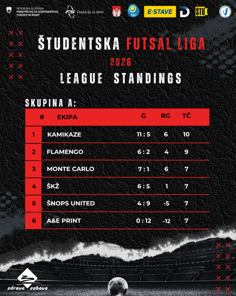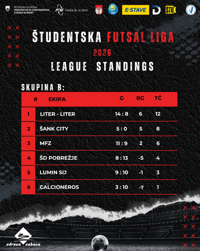 Celotni razpored tekem, rezultate in aktualne lestvice si lahko ogledaš na tej POVEZAVI